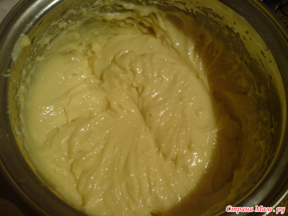 Тесто остудить, вбить поочеpедно 6 яиц.