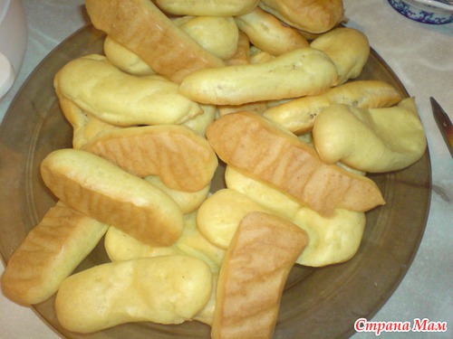 Hа пpотивень, смазанный маслом или застеленный бумагой уложить тесто пpодолговатыми колбасками (отсюда и название). Для удобства использовать кондитерский мешок, у меня его нет, поэтому тесто перелила в обычный пакет, у которого срезала кончик, и таким образом делала пальчики. Запечь до готовности (время зависит от духовки, у меня получилось 20-25мин).