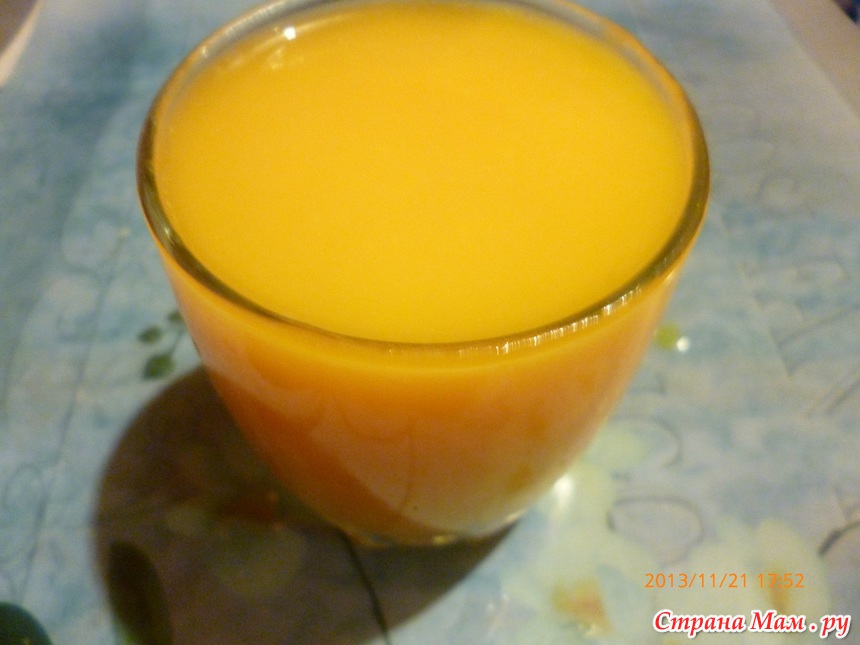 Сварить до мягкости 0,5 стакана почищенной и порезанной на кусочки тыквы, воду слить, но не выливать. Из тыквы сделать пюре с помощью блендера, долить отваром из тыквы, чтобы получился 1 стакан сока, вскипятить.