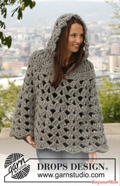 Изысканность – Пончо с капюшоном крючком от DROPS.