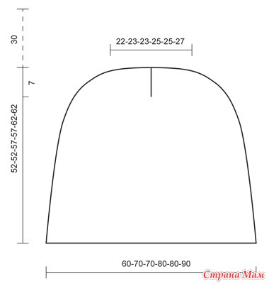 Свободно вязать 29-31-31-33-33-35 в/п c Polaris крючком номер 12 мм, повернуть и вязать 1 ст с 2/н в 5-й в/п от крюч. ( перв. 4 в/п = 1-й ст с 2/н ), затем 1 ст с 2/н в кажд. в/п = 26-28-28-30-30-32 ст с 2/н, повернуть ( 1-й ряд. = ИЗН. СТОРОН. ). ЧИТАТЬ СОВЕТ ПО ВЯЗАНИЮ КРЮЧКОМ! На 2-й ряд. добав. 17-21-21-25-25-29 ст с 2/н-ЧИТАТЬ СОВЕТ ПО ПРИБАВКАМ-равномерно в ряду = 43-49-49-55-55-61 ст с 2/н. Повторять прибавки 1 раз после этого в след. ряду = 60-70-70-80-80-90 ст с 2/н.
