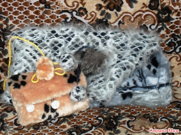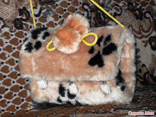 А чтобы дочкины ручки не мерзли, сшила и ей муфточку-сумочку: 2 прямоугольника меха, а между ними ватин.