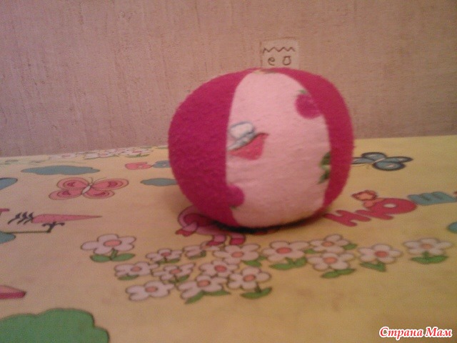 Я далеко не профессионал,но,вдохновившись вашими гениальными работами,сшила недавно мячик сыну. Внутри вложено яйцо от киндер сюрприза с пшеном,поэтому мячик получился гремящим. Теперь хочу сшить собачку,у AZA подглядела