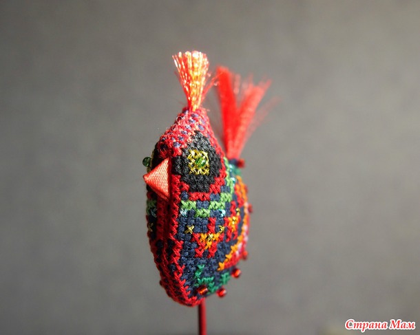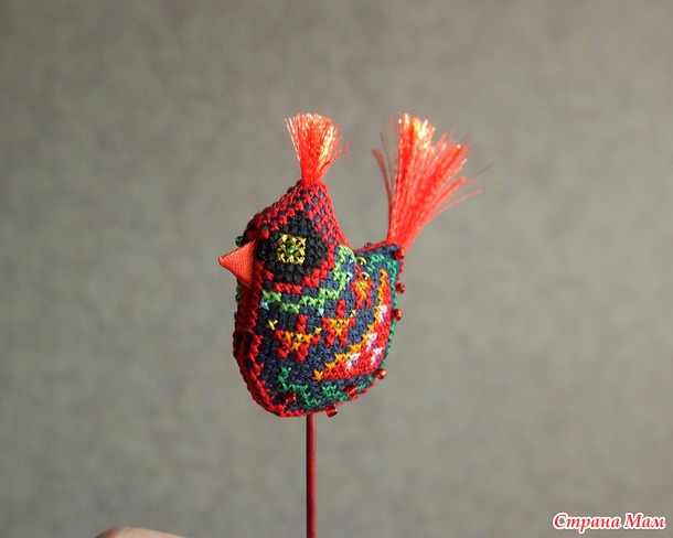 Вот такая пташка у меня получилась, благодаря Наташеньке http://natakhomch.stranamam.ru/, которая любезно поделилась со мной схемкой и заразила птичками от Just Nan