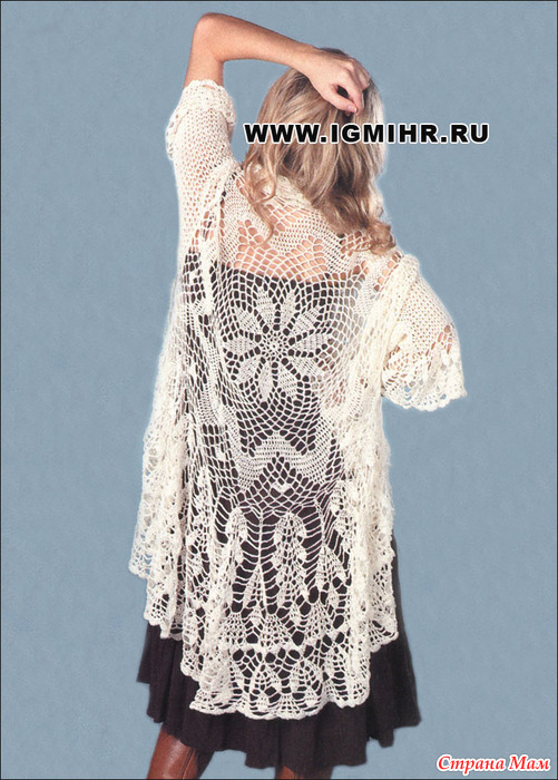 Очаровательное кружево. Ажурный жакет-таблетка цвета слоновой кости.