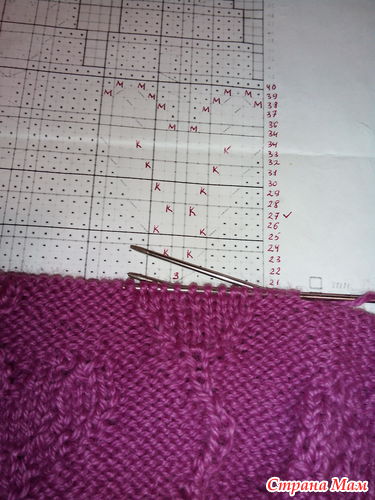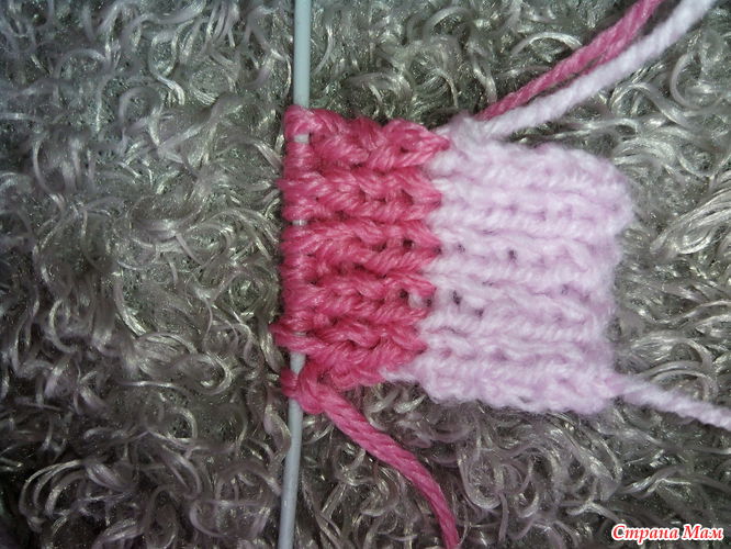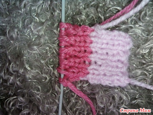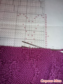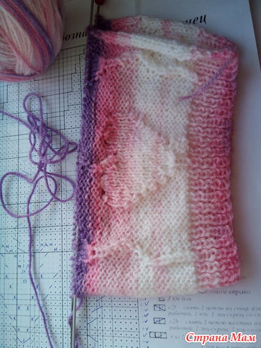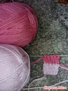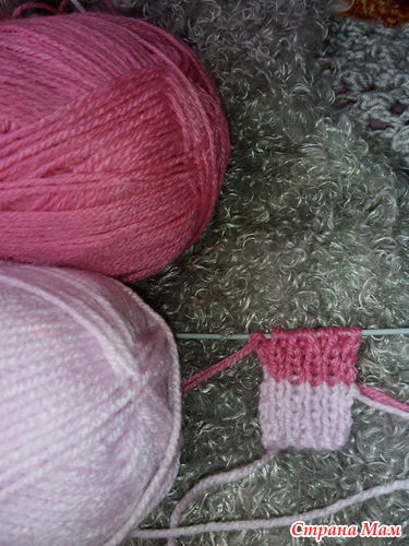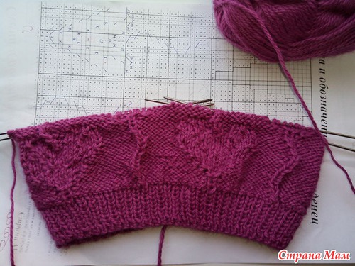 Далее буду вязать установочный ряд на бОльших спицах (2.5) и сам рисунок сердечек согласно схеме "младенец".
