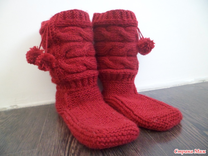 Связать второй сапожок таким же образом, при этом «застежка» с пуговицами должна располагаться симметрично.