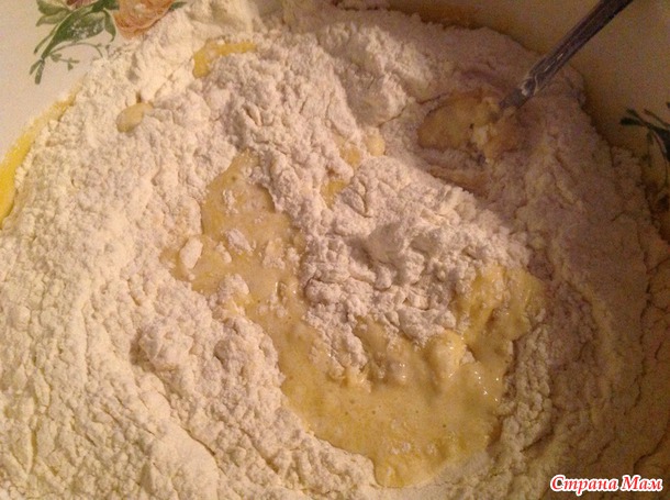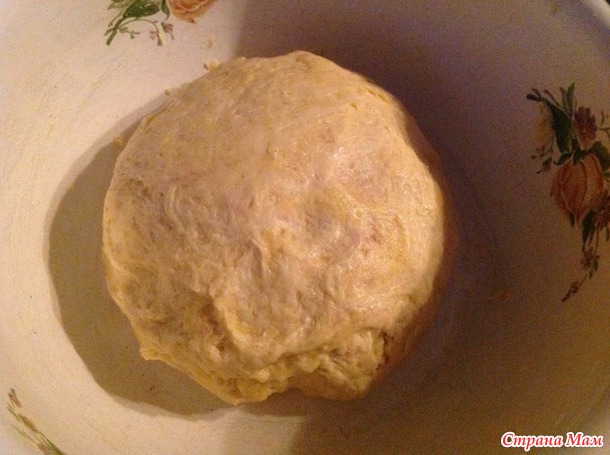 Замесить тесто, сделать это можно даже ложкой. Тесто получается очень мягким и податливым