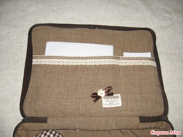 Кармашки для канвы, пялец, ножниц, ниток, бумаги... Игольничка присутствует))) Ну а размерчик (23 см х 30 см х 6 см) дает простор для фантазии в плане чего ещё туда положить)))