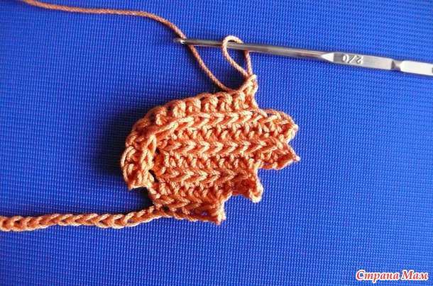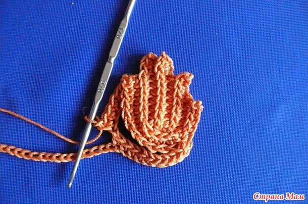 Безотрывное вязание листиков крючком.