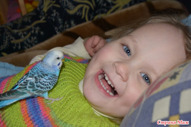 Честно говоря я никогда не знала что попугаи умеют играть! Доча кричит "Доганяй!" и бежит из комнаты в комнату, А Рикки летит за ней куда бы она не побежала))) Тащит клювом ее любимых лошадок и садиться на них верхом! Забирает у нее карандаши и кисточки если она рисует, ворует пластилин)) Смотрит с ней мульты(конечно"Рио" любимый! Особенно птиц любит целоваться! Вот какая у нас любовь!
