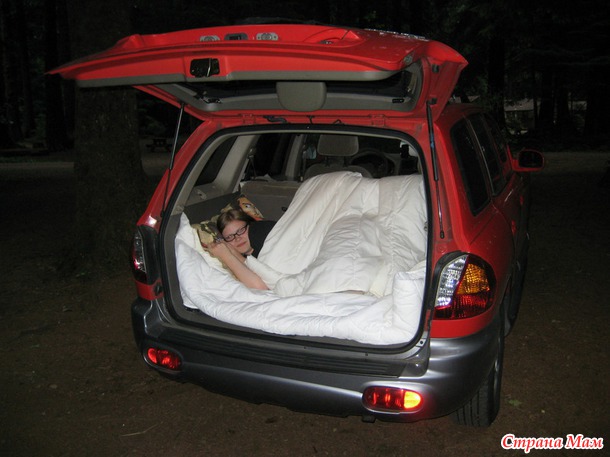 одеяло большое, нам хватит на 2-х, Лида решила спать в багажнике, а я на заднем сиденье.