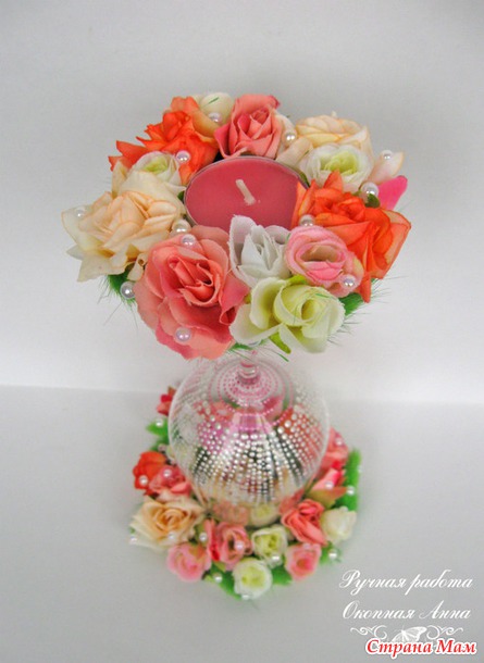 Подсвечник сделан из бокала для вина.