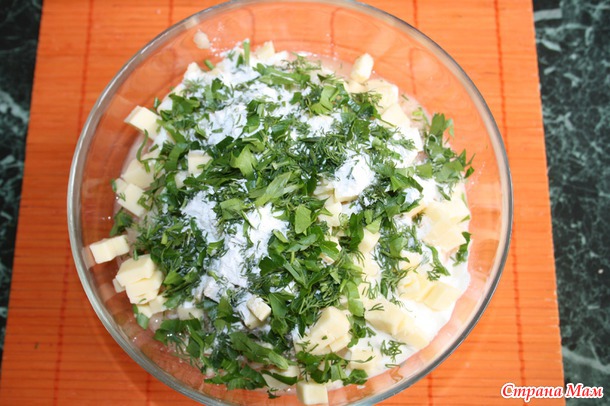 Крахмал, соль, перец, специи по вкусу, зелень порезать ( у меня это петрушка и укроп)