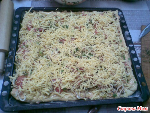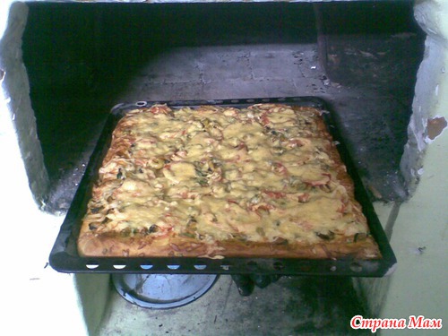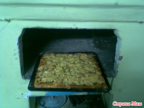 Вот такая сырая пицца(жаль мраморная плита в печи лопнула и приходится сейчас делать на протвине.