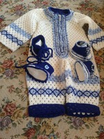 Спасибо всем, кто помог мне определиться с размерами. Связала комбинезончик и две пары пинеток для внучатого племянника, в комплект к пледу.