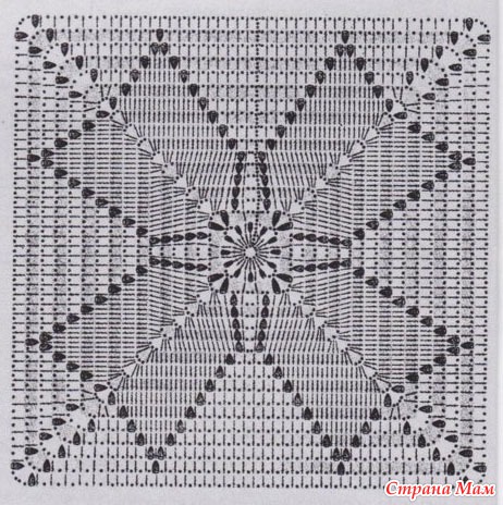 Девочки помогите может у кого есть схемы больших квадратных мотивов, крючком, перерыла весь интернет но так ничего и не нашла, может