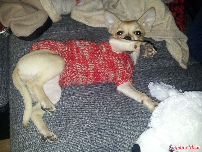 Знакомтесь, наша Кендисс! связала ей пуловер, чтоб не мёрзла. нам всего 5 месяцев, на улице так холодно!