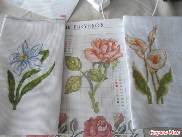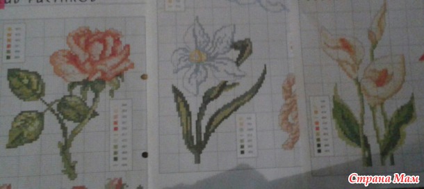 Начала вышивать мои цветочки. Схемки брала из журналов Современная вышивка крестом, нитки ДМС и Гамма, на аида 14. Готовые получаться 13 на 17. Первый вышила нарцисс. Потом каллы. Сейчас розу начала. Параллельно вышился ангелок. Спасибо, что заглянули