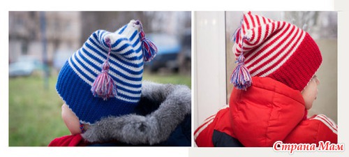 Первая шапочка удобней тем, что ее можно носить под куртку и комбинензон, она двухсторонняя.