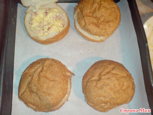 Приготовила такие булочки, получается очень вкусно! Сразу только предупреждаю - они хрустят, как после тостера, если кому-то хочется мягкой, запекать пару минут в духовке, либо поставить в микроволновую печь (но тогда придется обойтись без яйца).