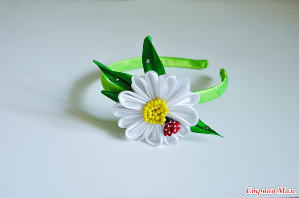 Ободочки делала впервые, Очень давно хотела сделать ромашки, и вот вчера наконец ко мне пришло вдохновение (наверное погода навеяла) Насмотрелась на красоту в интернете и сваяла вот это)
