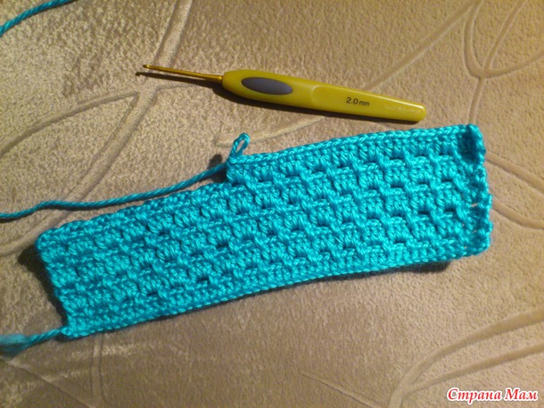 Узор состоит из ячеек по 3 петли. Набрала 51 возд. петлю (17 ячеек) и начала вязать - получилась ширина 20см.