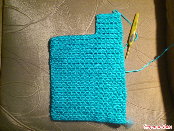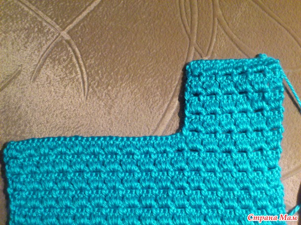 В ролике в уголках вместо 3ст. сн вязали 6ст. сн, но мне не понравилось - фалдит немножко, поэтому распустила и связала по 5ст. сн.