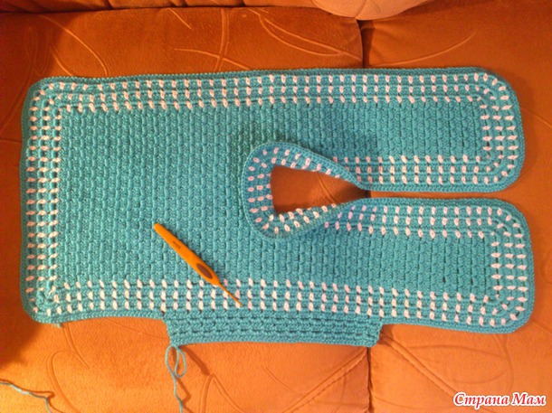 И так, обвязала свою заготовочку два раза, смотрю - узковато будет и полочки не сходятся