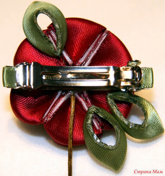 яобязательно делаю кружок-основу и на него приклеиваю цветок.потом с основой приклеиваю на заколку и через заколку еще фиксирую лентой сверху чтоб неотклеилось.