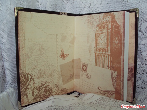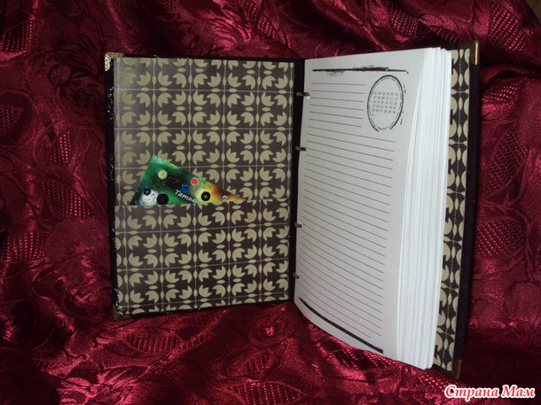 Начну конечно с блокнотов, а точнее с ежедневника № 1. Этот похож на сделанный мною ранее. Попросили сделать в подарок, а я и рада стараться. К нему сделана подарочная коробочка.