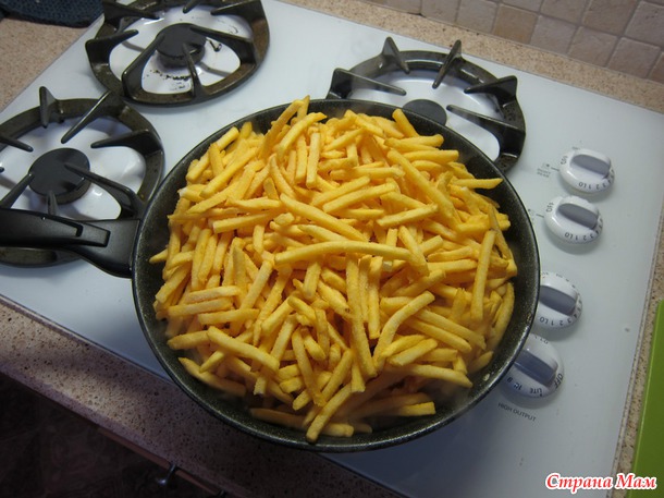 Пакет уже порезанной картошки, прямо замороженной из морозилки