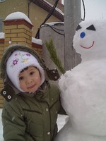 Сегодня прекрасная погода, снег, потеплело и из него можно уже что-то лепить. Наигрались в снежки, потом муж с дочкой решили слепить снеговичка-жениха.