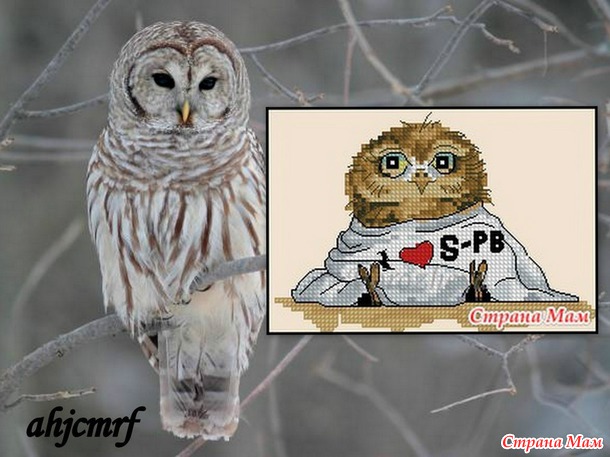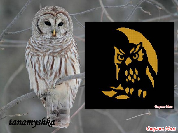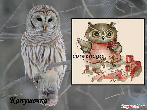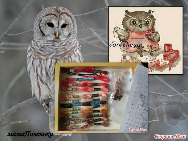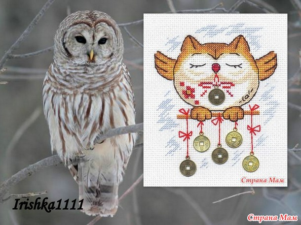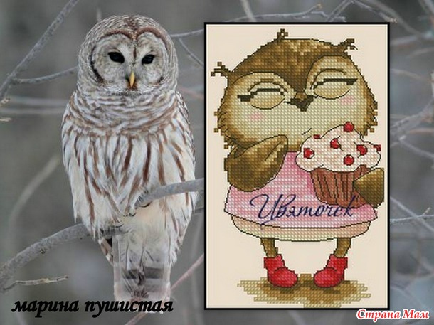 Ириша, я пока начну с маленькой совушки. Еще с открытками не разобралась, что бы за большой проект браться.