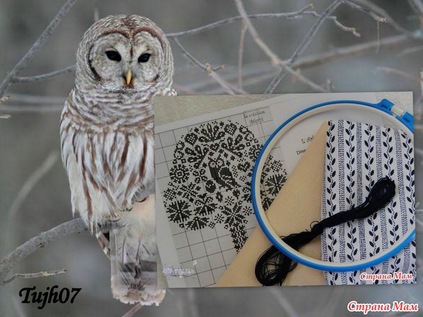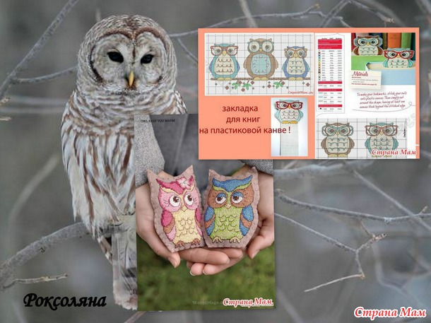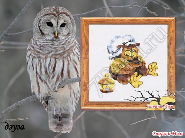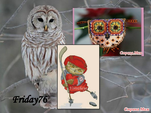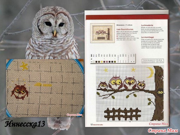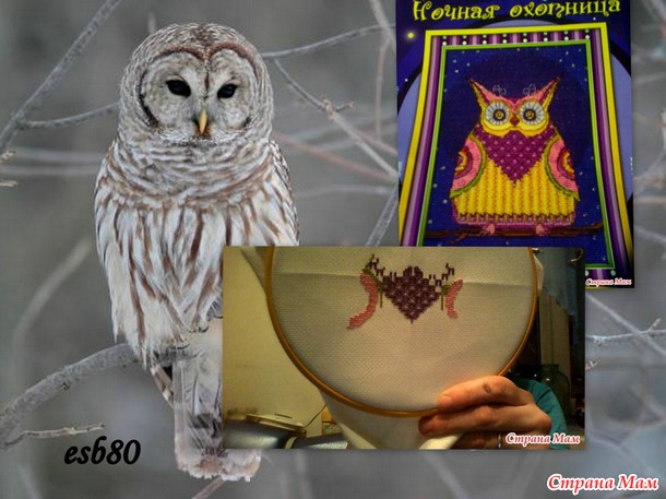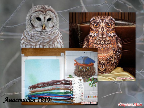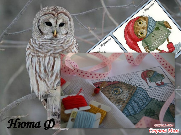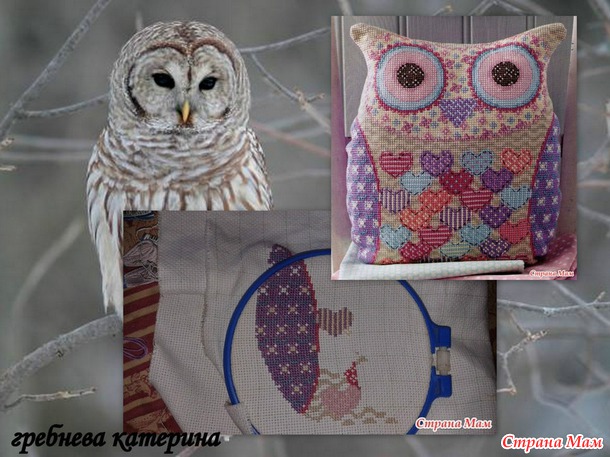 1. В совместнике могут участвовать все работы, где главная героиня - СОВА. Можно вышить и большую работу, а можете и небольшую миленькую игольницу