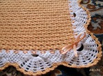 Размер пледа: 80х80. Пряжа – bebe Alize sekerim, 100% акрил (детский), в мотке 100 гр. Ушло почти 5 мотков персикового цвета и 1 моток белого цвета. Крючок № 2,5.