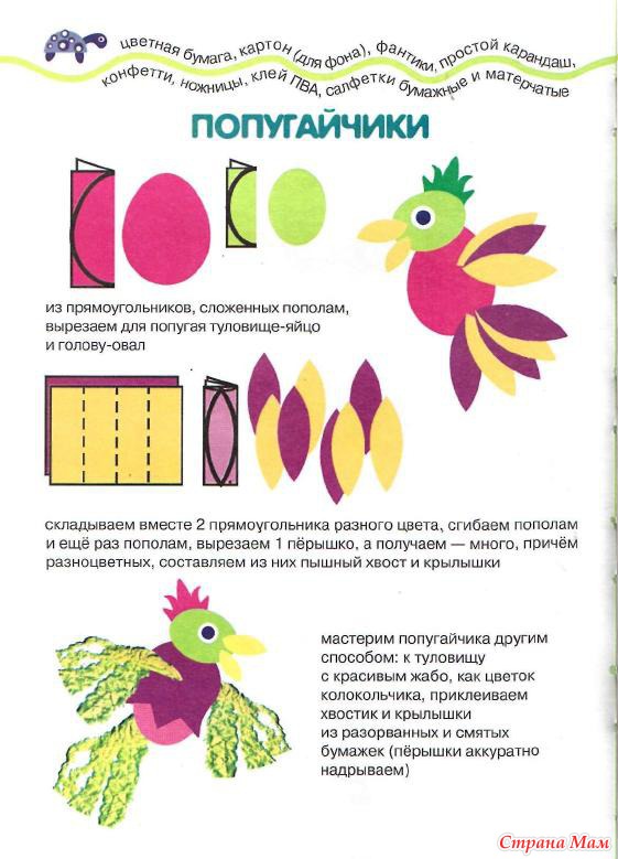 Аппликация. Зоопарк. Попугаи