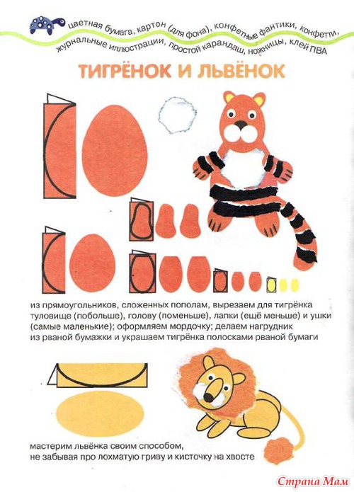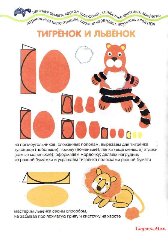 Аппликация. Зоопарк. Тигрёнок и львёнок.