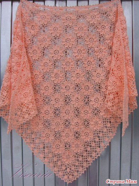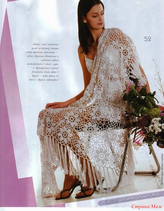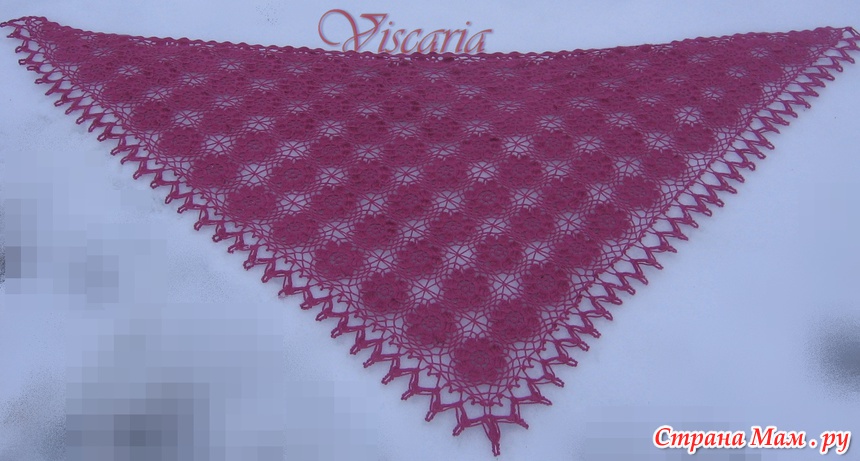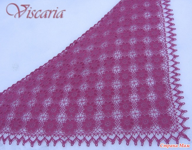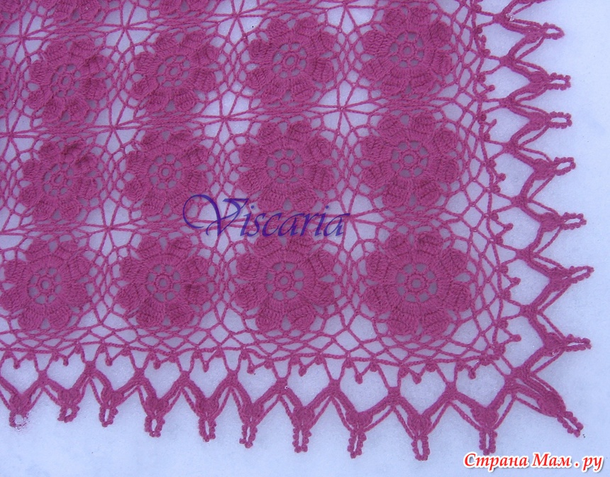 Представляю вашему вниманию ещё одну шаль, связанную по известному мотиву из журнала Мод №512, модель 52. Пряжа Alize Real40 Angora Uni Colors, 100г/480м, крючок №2,5. Размер шали: размах- 220см, высота по центру- 110см. Кайму разработала сама, взяв за основу найденный на просторах интернета образец.