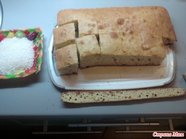 Чуть-чуть дайте стечь и... обмакните с четырех сторон в кокосовую стружку.