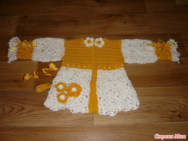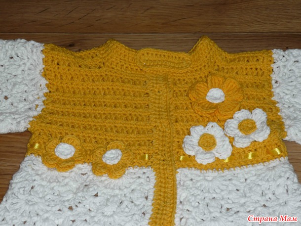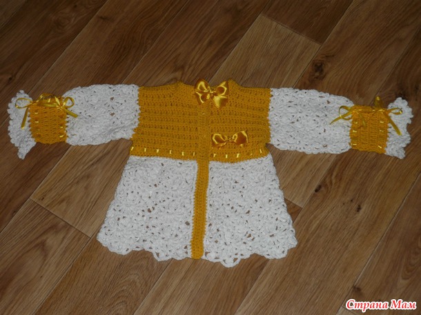 Связалась из пряжи "джинс" кофточка к годовасию маленькой куколки, (идею увидели на ям. мастер кажется есть и в СМ, но лично мы не знакомы. поэтому спасибо говорю тут :" большое вам спасибо. у вас потрясающие работы . они не просто вдохновляют, а западая в душу побуждают творить..." )