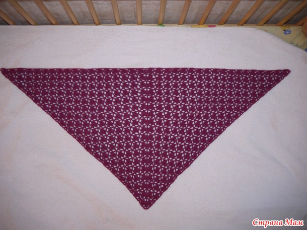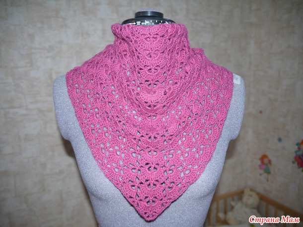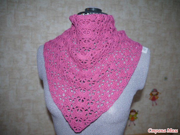 Связала для себя под шапку бактус - косынку., вязала из пехорки кашемировой крючком 5., ушло 2 моточка. Узор брала у нас в СМ., очень простой и легко вяжется. Размер получился метр на 46 см. Обвязку решила не делать., мне нравится и так