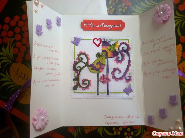 А внутри какая красота - замечательная вышивка и такие теплые слова!!!