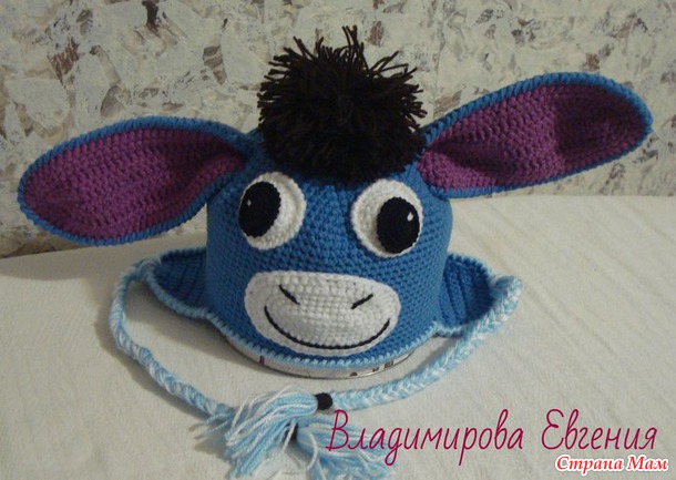 Заказали мне шапочку ослика связать, подходящего описания к сожалению так и не нашла, поэтому вязать пришлось на глаз. И вот мой ослик Иа )))