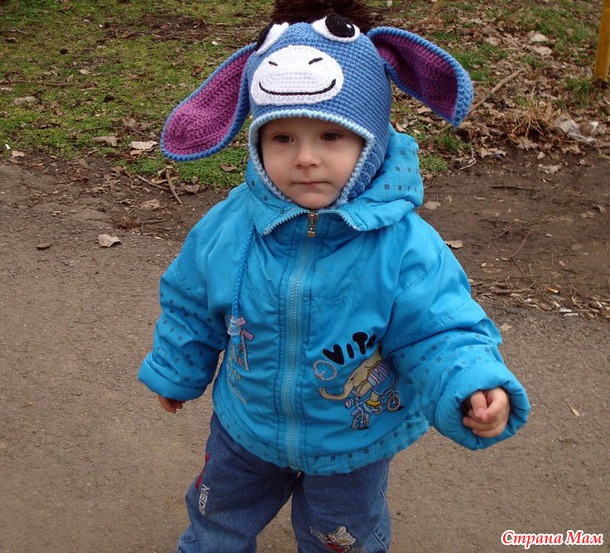 Заказали мне шапочку ослика связать, подходящего описания к сожалению так и не нашла, поэтому вязать пришлось на глаз. И вот мой ослик Иа ))) Вот на сынишке фоторгафировала Читать полностью