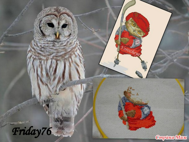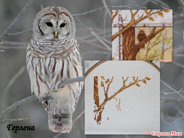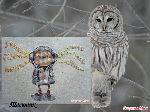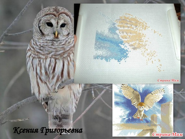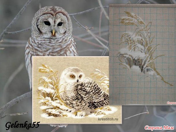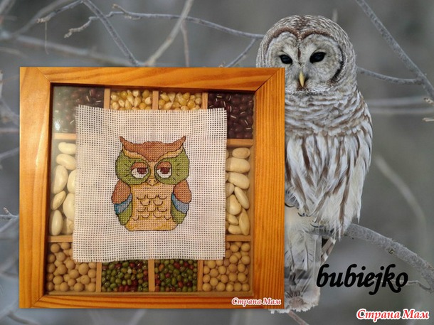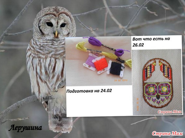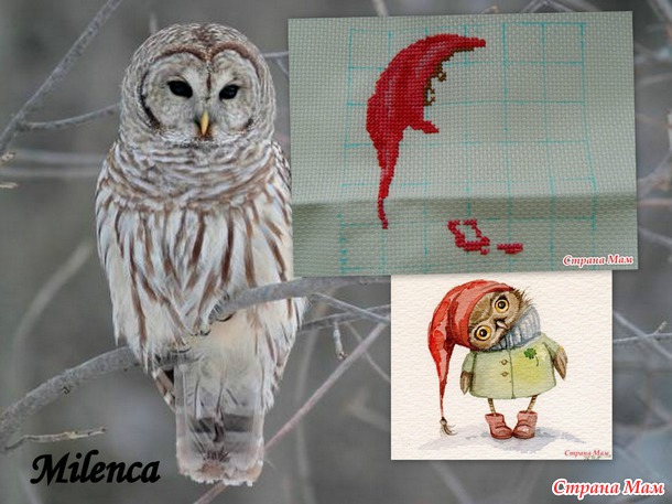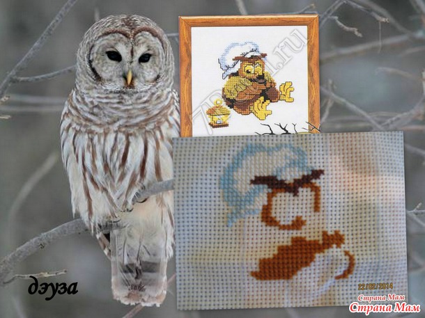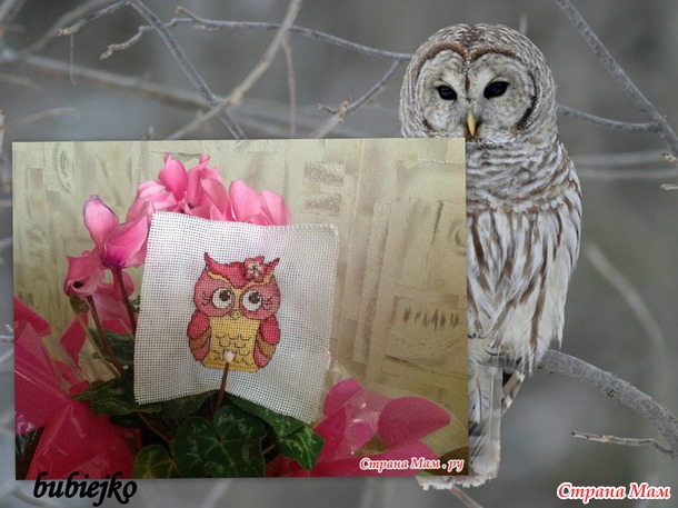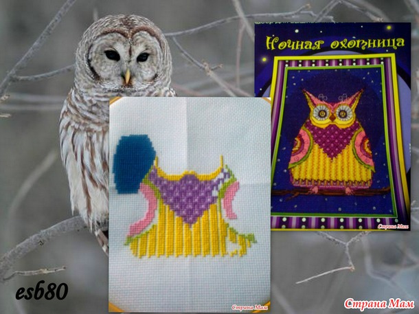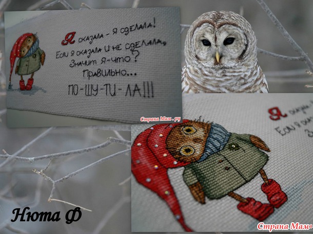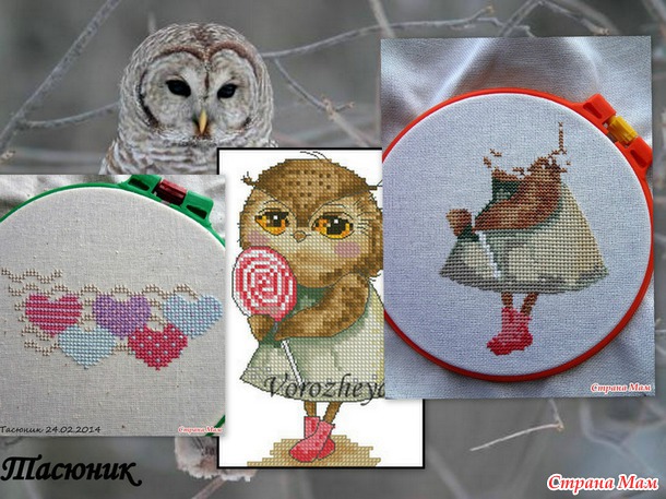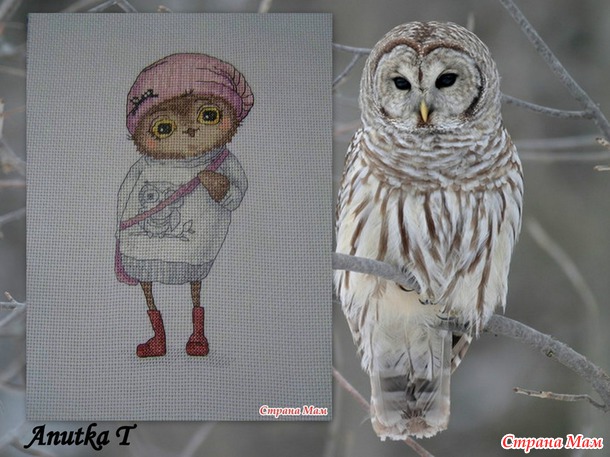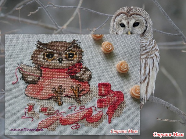 1. В совместнике могут участвовать все работы, где главная героиня - СОВА. Можно вышить и большую работу, а можете и небольшую миленькую игольницу