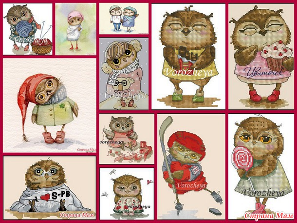 Одним из самых распространенных дизайнов у нас в совместнике являются совушки от Инги Пальцер. Вы только посмотрите, сколько их прилетело к нам в стаю!