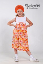 Мы усердно готовимся к лету, ткань куплена, лежит и ждёт своего звёздного часа... Один из отрезов довела до ума. К платью лёгкий беретик цвета обвязки.