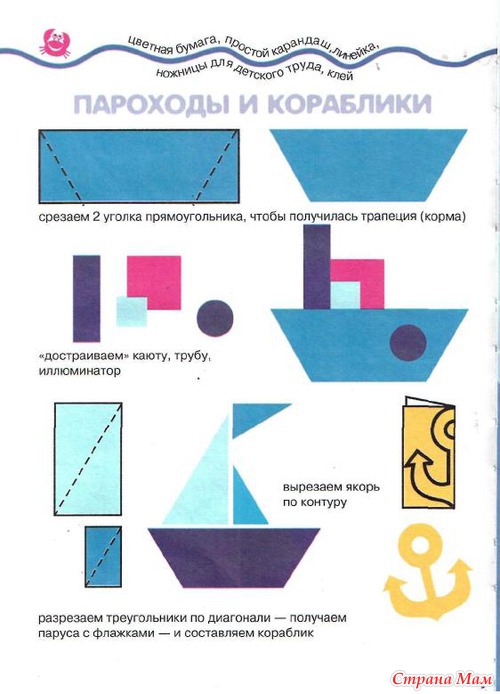 Аппликация. Море волнуется раз. Кораблик и пароход.