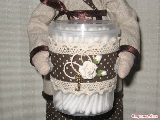 (это липучка) между ручками и баночкой- это я не ищу легких путей, захотела, чтобы баночку можно было отстегнуть, тётеньку раздеть и одежду ей постирать))) Никто ж правил гигиены не отменял...